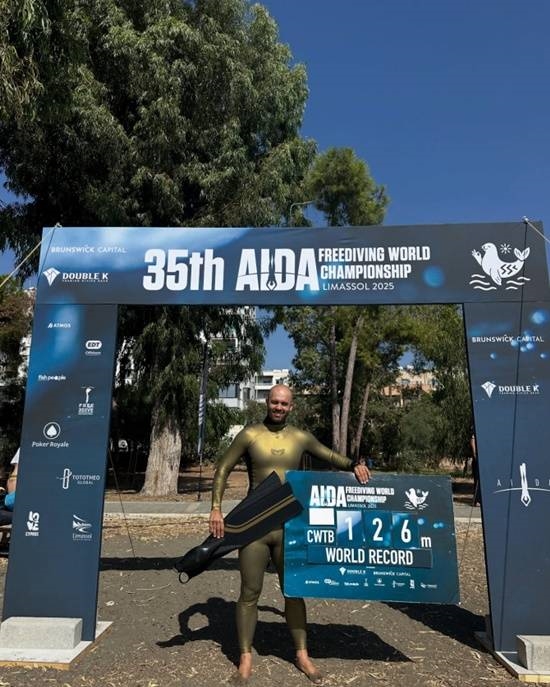 经官方认证,他下潜413英尺(约126米)的深度,成为恒定重量双蹼自由潜水的最深世界纪录保持者。