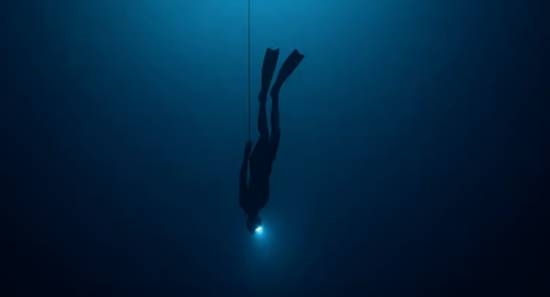 AIDA自由潜水世锦赛的双蹼恒重项目,该项目要求选手仅凭脚蹼下潜和上升,不得借助绳索牵引。在塞浦路斯利马索尔附近的地中海水域,他的头灯和安全绳是唯一的导引。