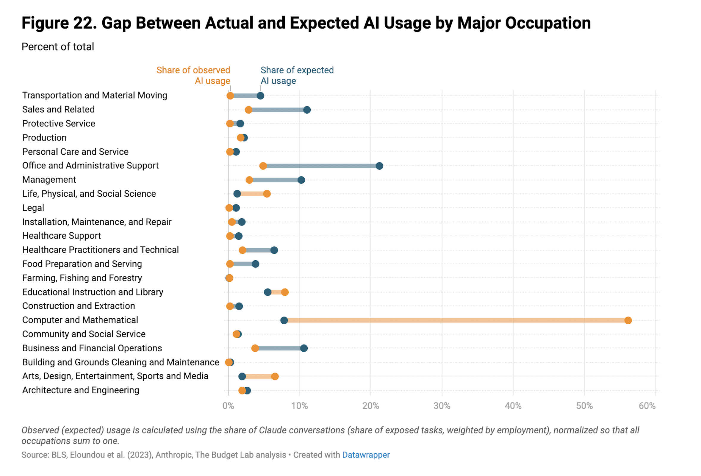 该研究结果与行业部分领袖的警告形成鲜明对比。英国标准协会近期对850多名企业高管的问卷调查显示,39%受访企业已因AI削减了基层岗位,43%预计未来一年将进一步裁员。