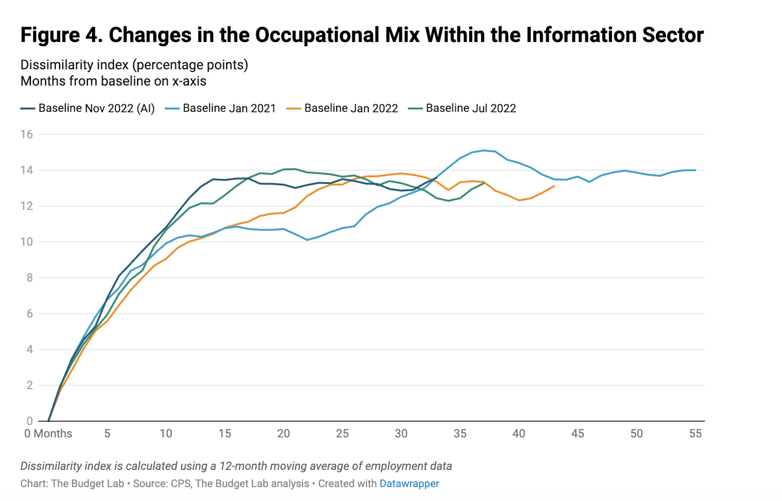 报告指出,尽管ChatGPT正在改变科技行业部分岗位类型,但其尚未以异常快速的速度改变整个美国经济的就业结构。