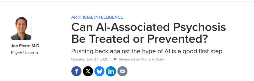 “2025年,我亲眼见过12名患者,因为AI失去现实感而住院”。这不是虚构情节,而是精神科医生Keith Sakata的真实警告。他发现,这种被称为“AI精神病”的现象,正在互联网上蔓延。这不是科幻剧本,而是当下正在发生的事。