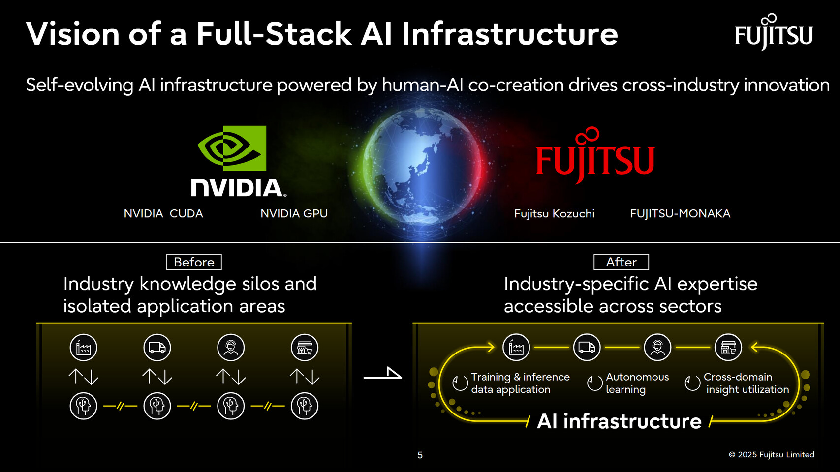 合作重点将放在联合开发与交付专为医疗、制造和机器人等行业设计的AI智能体平台,以及融合富士通MONAKA系列CPU与英伟达GPU、通过NVIDIA NVLink Fusion无缝连接的AI计算基础设施。上述AI智能体平台和计算基础设施,将大幅加速以AI智能体为核心的产业革命,这些智能体能够持续学习和进化。未来,跨行业、自我演化的全栈式AI基础设施有望突破传统通用计算系统的局限性。