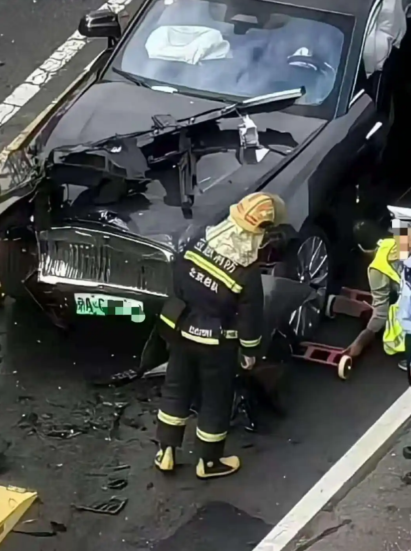 10月3日北京万寿路路段发生严重交通事故,网传涉事车辆为陈震所有的劳斯莱斯闪灵。根据现场照片及目击描述,劳斯莱斯车头严重塌陷。记者对比该车的车牌号,与此前媒体曝光的车评人陈震车辆为同一号牌。