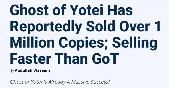 业内人士Millieamand透露,《羊蹄山之魂》首日卖出了130万套,而《对马岛之魂》当年的首日销量为125万套,这意味着新作在起步阶段已超越前作。不过它能否在长期维持这样的势头,还有待观察。此外,索尼暂未公布具体销量,上述数据的真实性也有待进一步确认。