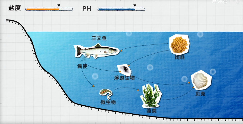 塔克拉玛干沙漠的盐碱湖水,其他的动植物养不活,但经过一些处理后就可以模拟海水环境,接着就可以用来养各种海产品,鱼粪通过微生物转化为氨基酸、钙镁钾等养分,被藻类吸收后又成为贝类的食物,而贝类又能净化水质,就形成了一个生态循环。