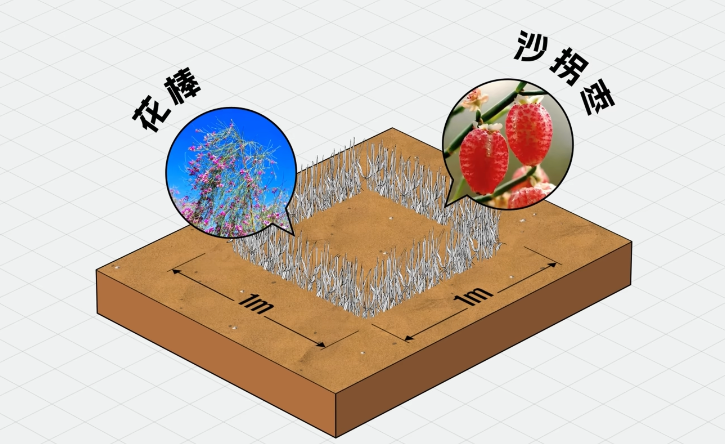 治沙工作者,会选用芦苇、麦草或其他当地适宜草材,扎入沙面?15–20cm 深,形成密集的 “ 草方格 ” 格网结构。
