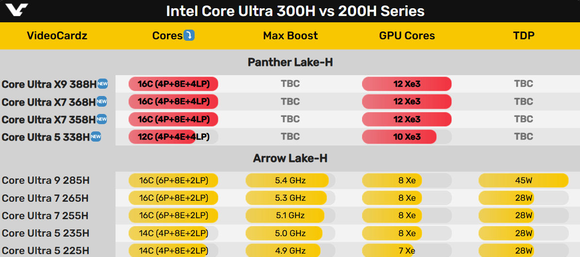 另外还知道有一款酷睿Ultra 5 338H,核显自然就不满血了,但还有几个核心不确定。