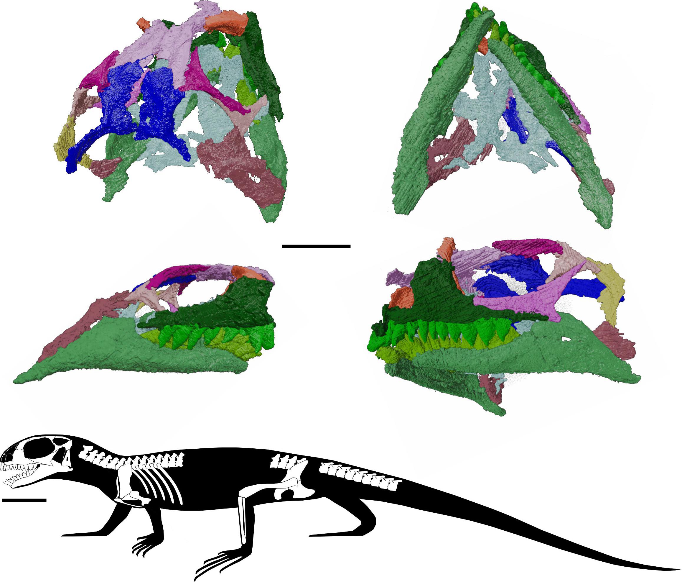 “现代古生物学研究常常利用X射线扫描,”项目联合导师大卫·怀特赛德(Dr David Whiteside)补充道。“而来自同步加速器的高分辨率X射线扫描可以展示极为精细的结构,避免损伤化石。之前我们用常规扫描已发现非常多细节,但标本实在太小,头骨仅1.5厘米,牙齿几乎难以分辨。因此我们得以在法国欧洲同步辐射装置和英国同步加速器上进行更高分辨率的CT扫描。”