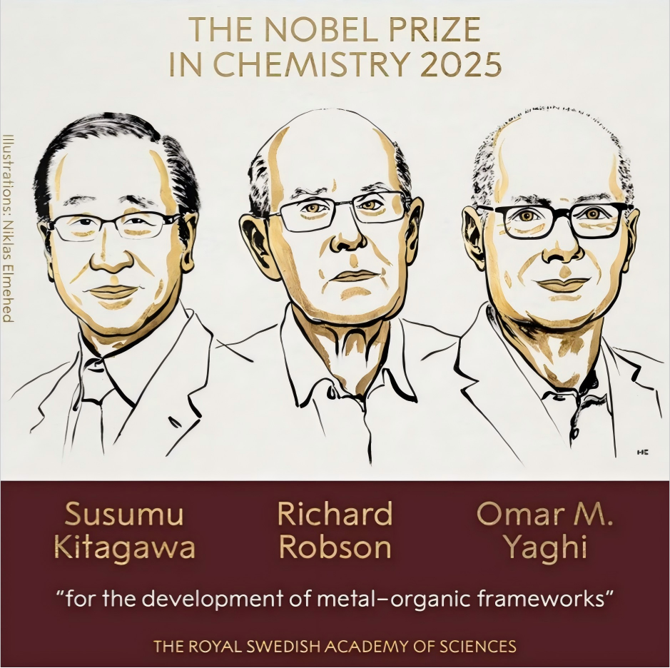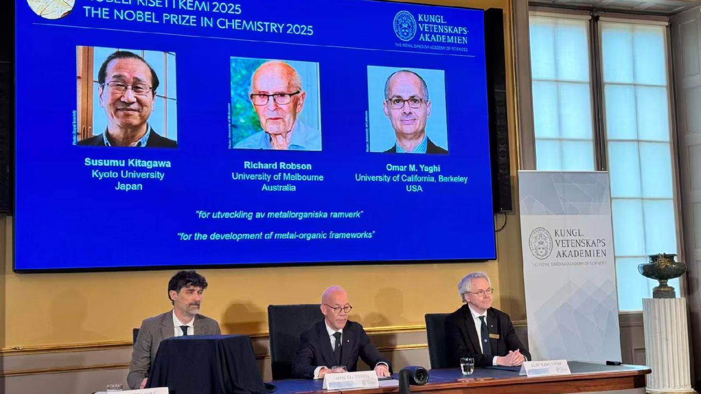 当地时间10月8日,瑞典皇家科学院决定将2025年诺贝尔化学奖授予北川进(Susumu Kitagawa)、理查德·罗布森(Richard Robson)以及奥马尔·M·亚吉(Omar M. Yaghi)三位科学家,以表彰其在金属有机骨架开发领域的贡献。获奖者将平分1100万瑞典克朗(约合836万元人民币)奖金。