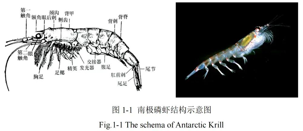 正常的活体南极磷虾呈半透明状,甲壳背部点缀鲜艳的红色斑点,而死亡后冻存的南极磷虾肌肉呈白色。