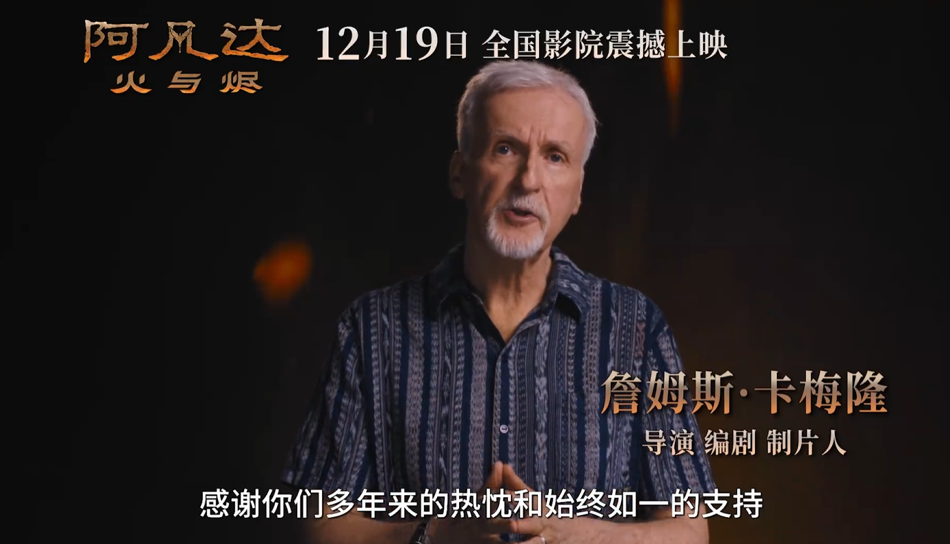 今日,导演詹姆斯·卡梅隆宣布,《阿凡达》系列第三部《阿凡达:火与烬》中国内地定档12月19日,同步北美。在定档视频中,卡梅隆还感谢了中国影迷多年支持。