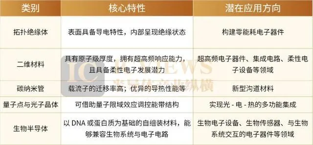 第五代半导体的发展正处于探索与起步阶段,拓扑绝缘体、二维材料、新型沟道材料、量子点与光子晶体、生物半导体等候选材料各具特色,都有望在未来的科技发展中扮演重要角色。