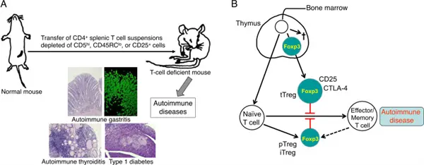 早在1995年,日本京都大学的坂口志文通过研究小鼠发现,人体免疫系统还有一种后来被命名为“调节性T细胞”的监察官,他们会监督其他免疫细胞,一旦发现这些免疫细胞误伤队友,调节性T细胞就主动出击干掉内鬼。