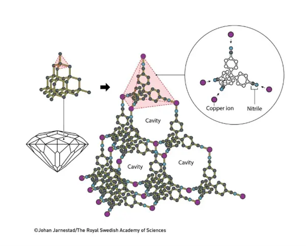 化学家的得主分别来自日本京都大学的北川进、澳大利亚墨尔本大学的理查德·罗布森以及美国加州大学伯克利分校的奥马尔·亚吉,凭借着发展了金属有机框架,开创了一种全新的分子建筑学成功得奖。