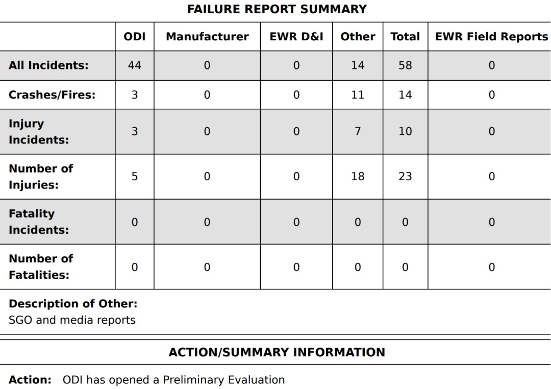 官方文件中表示,算上特斯拉主动上报的、媒体测试的…总共收到58份使用FSD时违反交通安全规定的事故案例报告,造成共23人受伤。