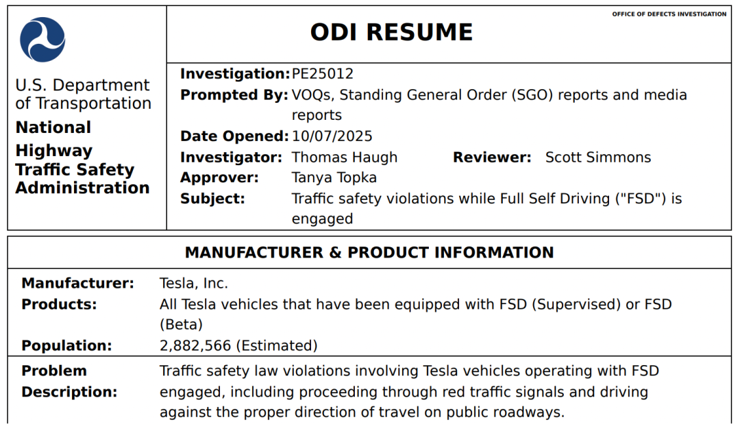 NHTSA(美国国家公路交通安全管理局)是一点面子也不给,反手就开启了针对FSD的调查。