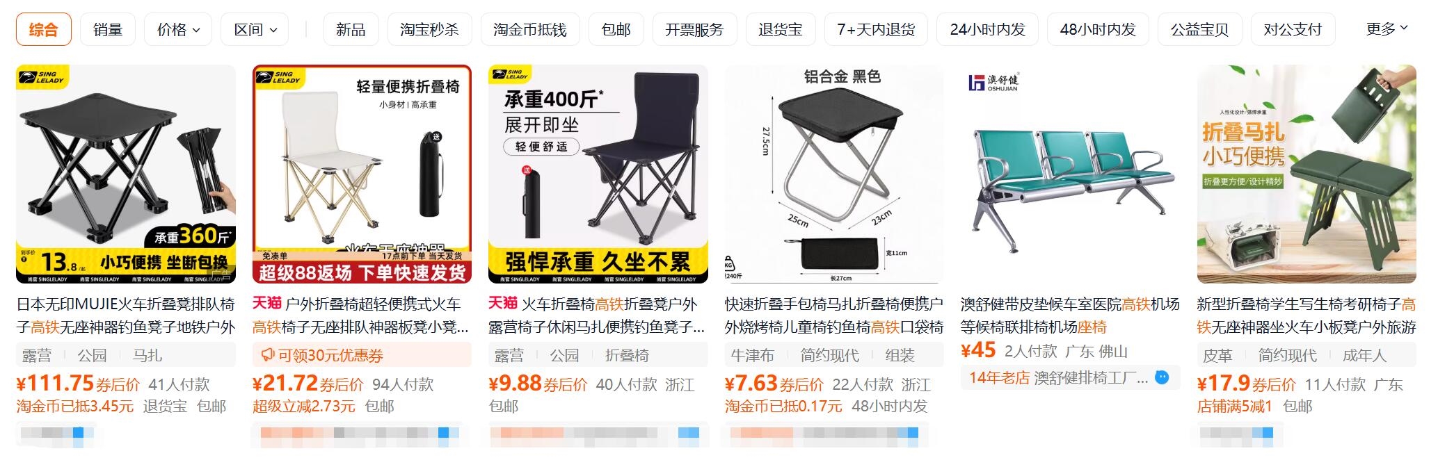 值得注意的是,在电商平台上,不少商家销售可以上火车高铁的简易座椅,面向那些买到无座的旅客朋友,这些座椅可以折叠收纳,方便携带。