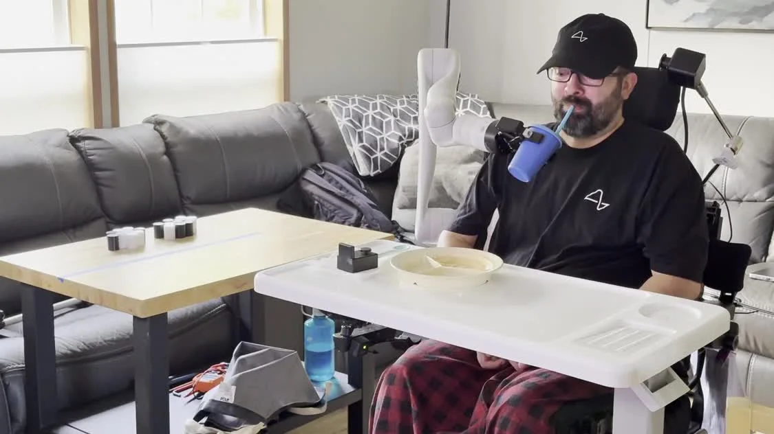 患者利用这套脑机接口系统,驱动机械臂精准地抓取杯子并送到嘴边饮水,还能自主打开冰箱、使用微波炉加热食物以及戴上帽子。这些看似简单的动作,对于行动严重受限的患者而言,是恢复生活自主权的关键一步。