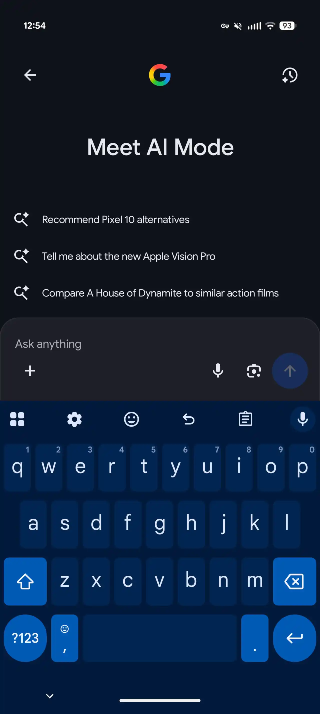 在Google搜索的AI模式界面,用户将会看到一个全新“加号”图标出现在提示框左下角,将语音输入和Lens按钮移至右侧。此外,页面建议轮播也被更实用的列表式提示所取代。