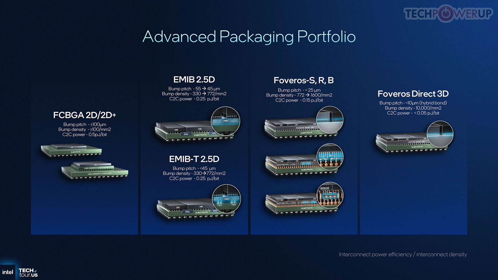 这些晶体管和供电改进对最终产品的影响,还需看封装与模块化设计。Panther Lake采用Foveros-S 2.5D封装,细间距互连约36微米,将计算、图形与平台模块集成为单一芯片系统。该模块化方法允许英特尔针对每个功能将模块生产在最优工艺节点,不仅提升功能良率,也降低了大规模单体芯片的制造风险。