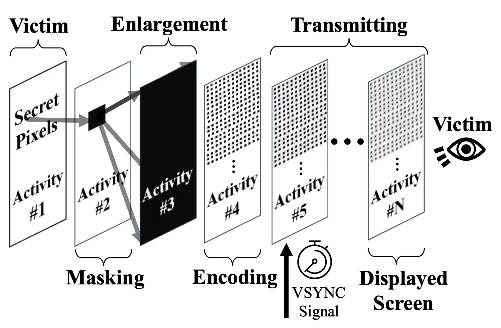 恶意应用通过发送Intent打开目标应用(如Google Authenticator),然后使用遮罩技术叠加几乎不可见的窗口,以隔离特定像素。