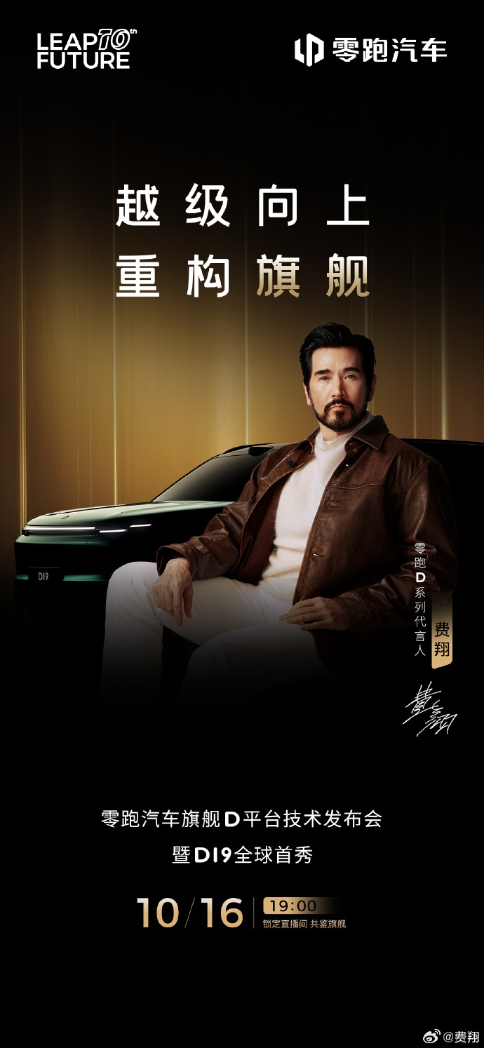 今晚19点,零跑汽车旗舰D平台技术发布会暨D19全球首秀将正式举行。而在刚刚,零跑汽车官宣费翔成为D系列代言人,其本人也将现身发布会。