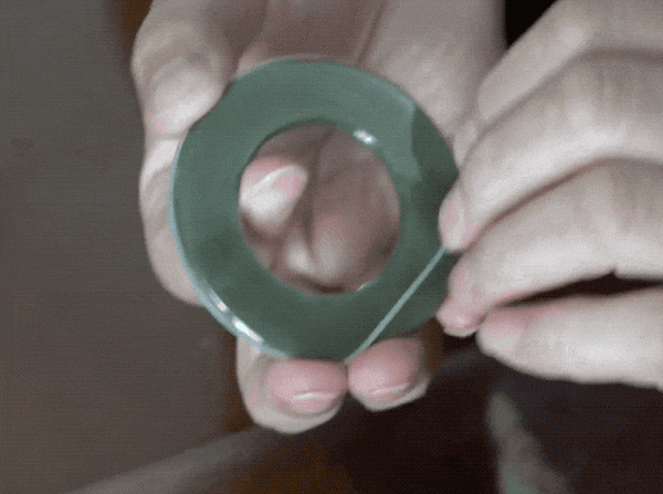 最后,将液态的阻尼材料灌进玉与金属间的缝隙后固化,让玉与金属”严丝合缝”不再分离。