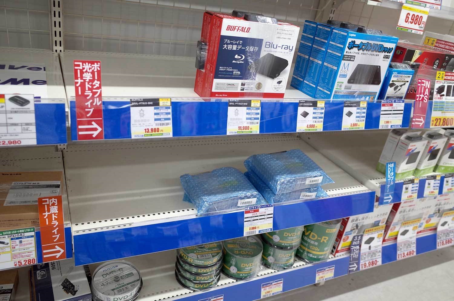 在秋叶原,几乎所有渠道的光驱都已经卖光了,尤其是性能更好的BD-R蓝光光驱,当然普通的DVD-R光驱也货源稀缺。
