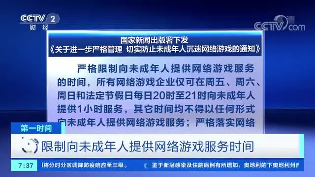 针对未成年人,则设定更为严格的“宵禁时间”——小学生及以下儿童须在晚上9点前停止使用,中学生及以上青少年须在晚上10点前停止使用。