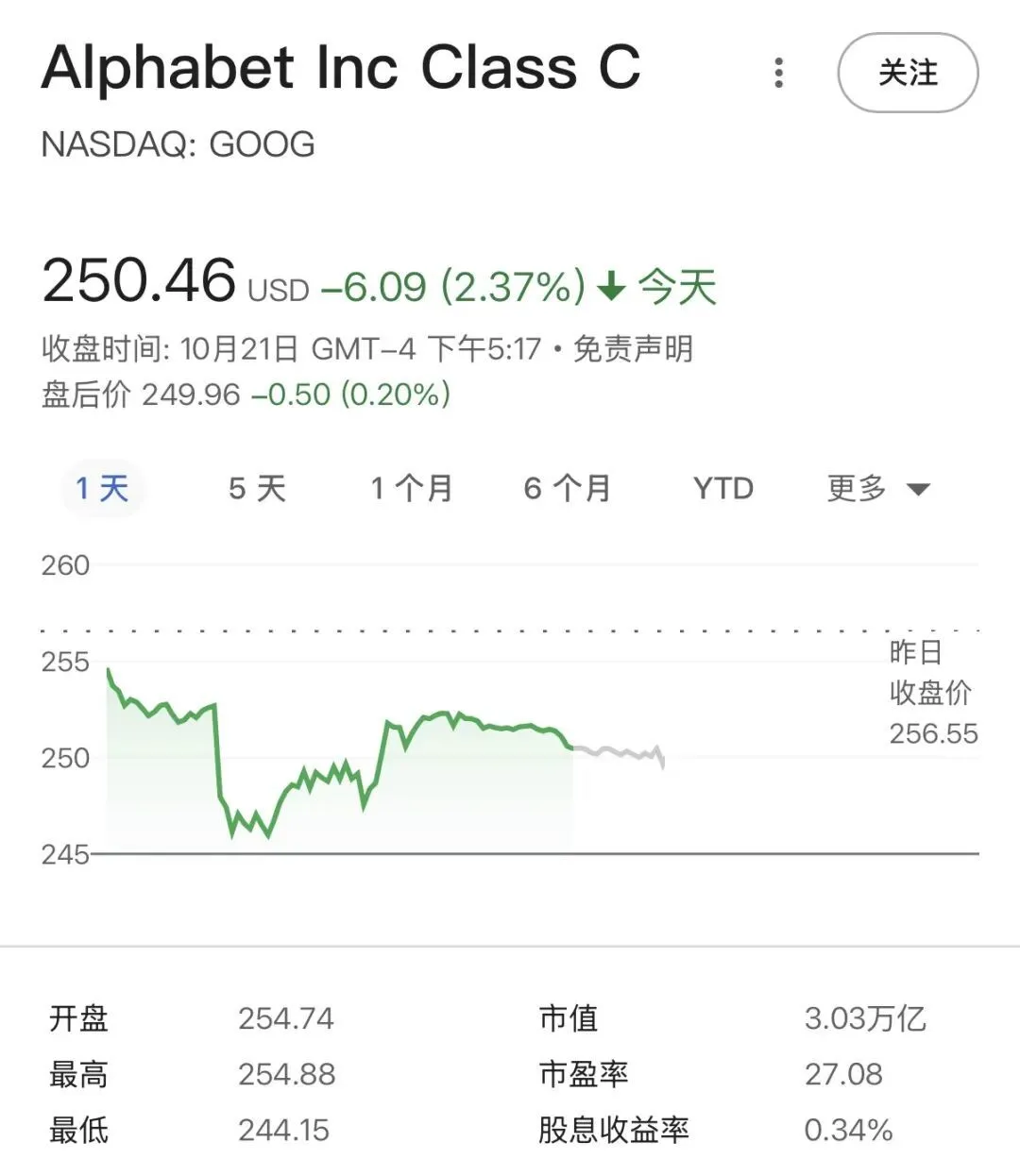 产品刚一发布,Google母公司Alphabet的股价今日应声下挫超2%。