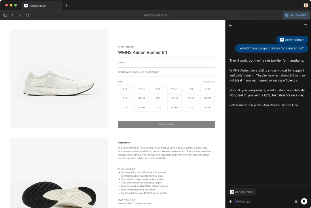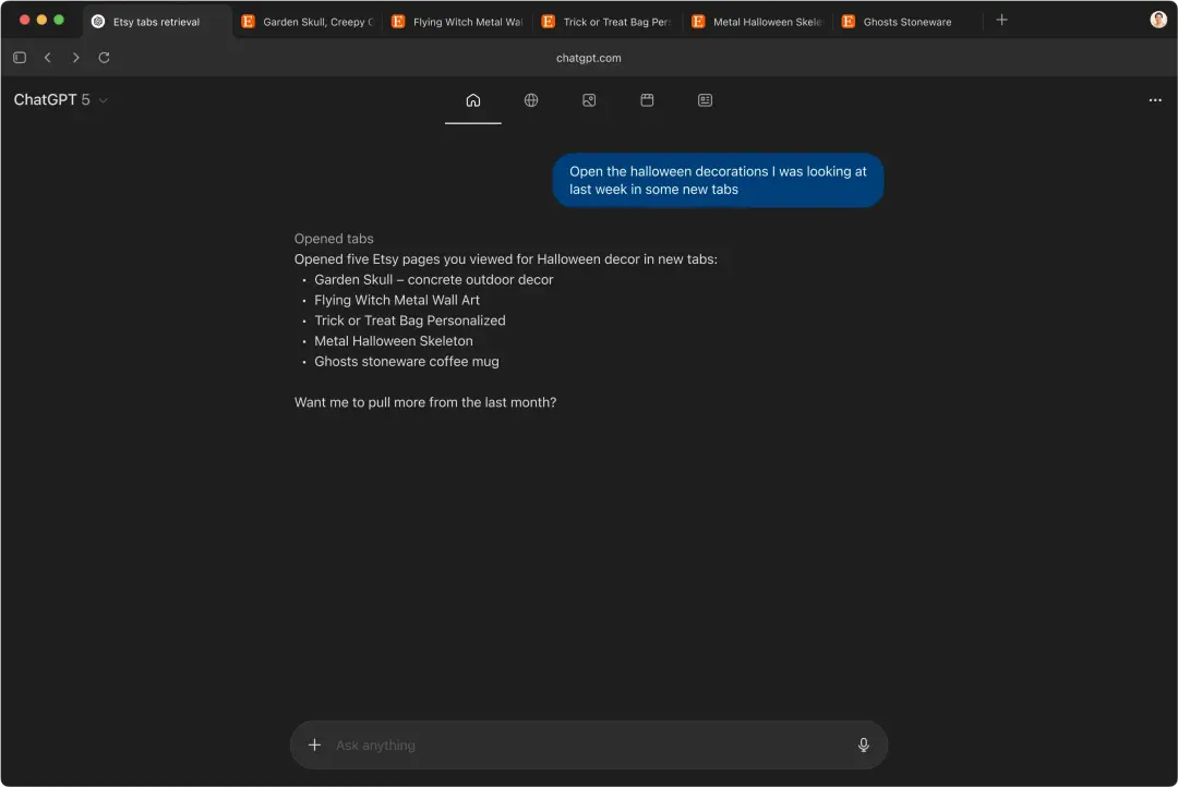 输入“重新打开我昨天看过的那些鞋子”或“整理一下标签页”,剩下的就放心交给ChatGPT吧。