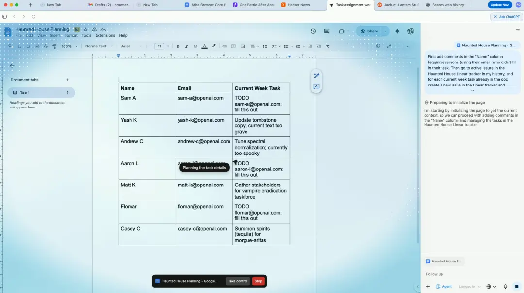 通过智能体模式,ChatGPT还可以在Atlas中为你分担工作。