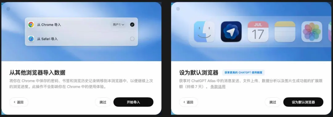 上手非常简单:首次打开ChatGPT Atlas时,登录你的ChatGPT账户,并从当前浏览器导入书签、已保存的密码和浏览历史即可。