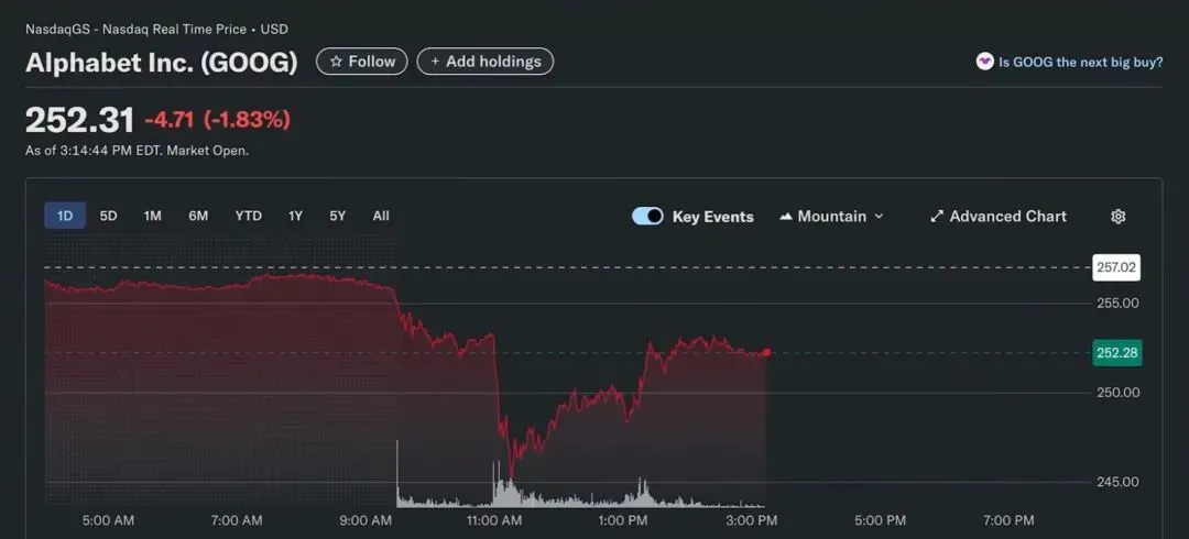 此消息一出,隔壁Google的股价,直接被干跌了 3% ……坏了,这是冲着Chrome来的啊。