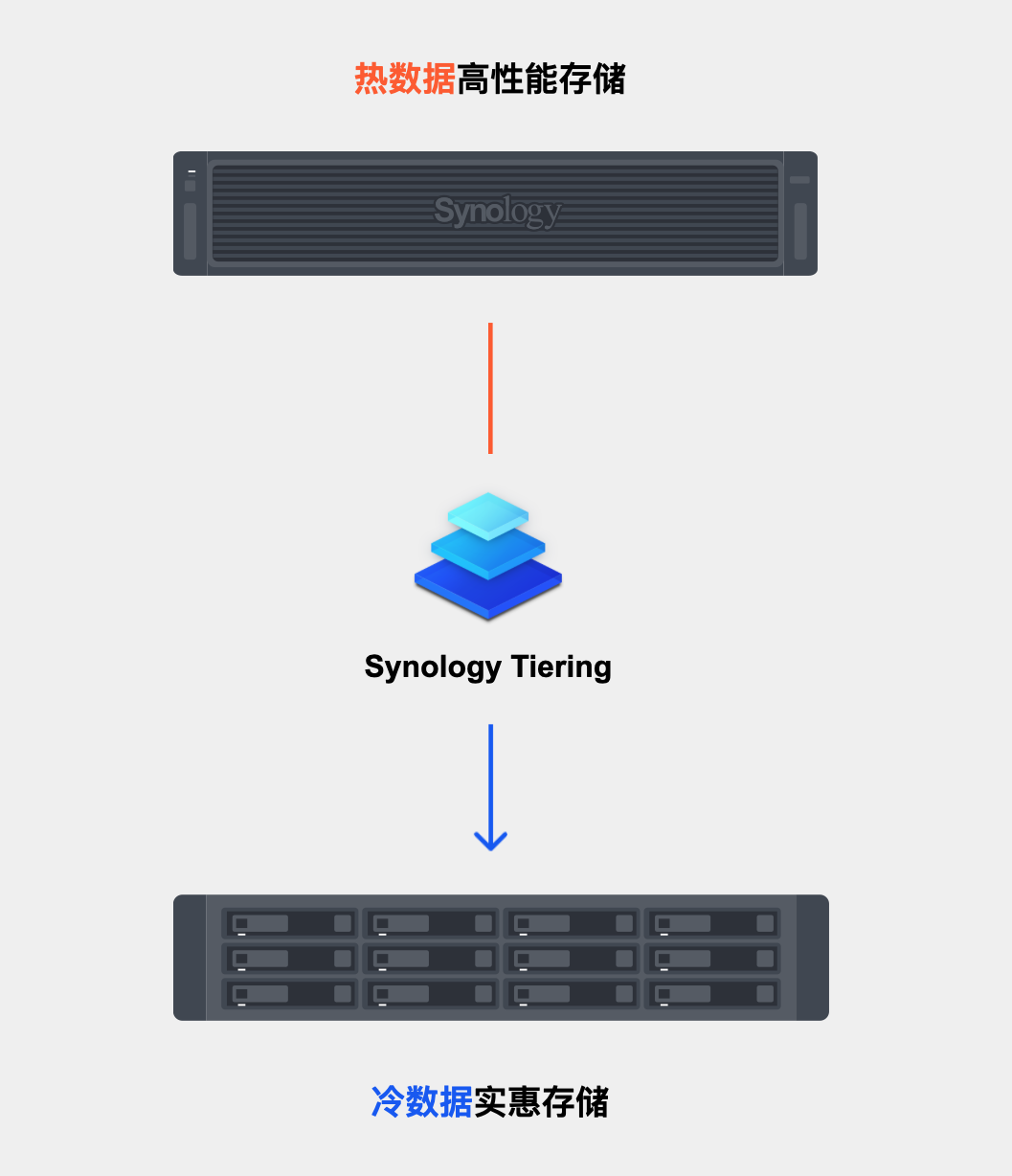 新增的Synology Tiering分层存储能自动把高频访问的“热数据”放高速盘、低频的“冷数据”存普通盘,兼顾性能和成本。