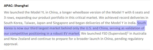 比如财报提到的,特斯拉在韩国、台湾、日本和新加坡这些地方,交付量都创了记录。其中韩国市场表现最亮眼,9月份,特斯拉在韩国卖了9069辆,同比暴涨572.3%。