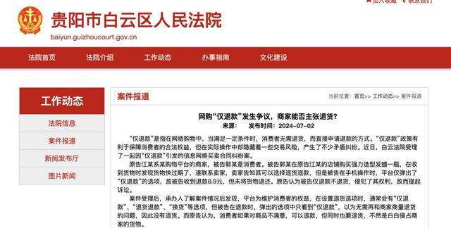 贵阳市白云区人民法院就曾受理过一起因“仅退款”引发的信息网络买卖合同纠纷案。