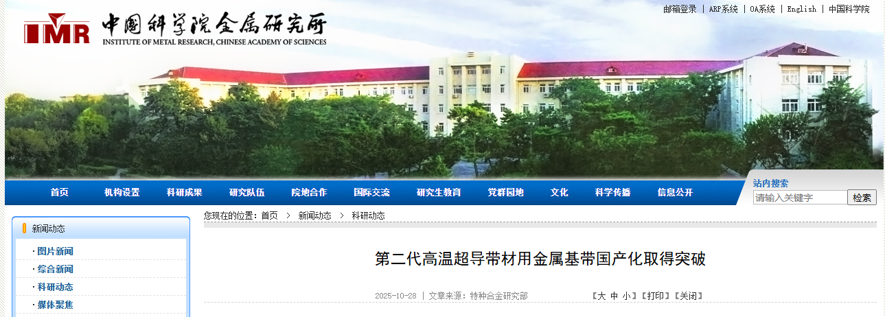 第二代高温超导带材用金属基带取得突破 “人造太阳”核心材料实现国产化