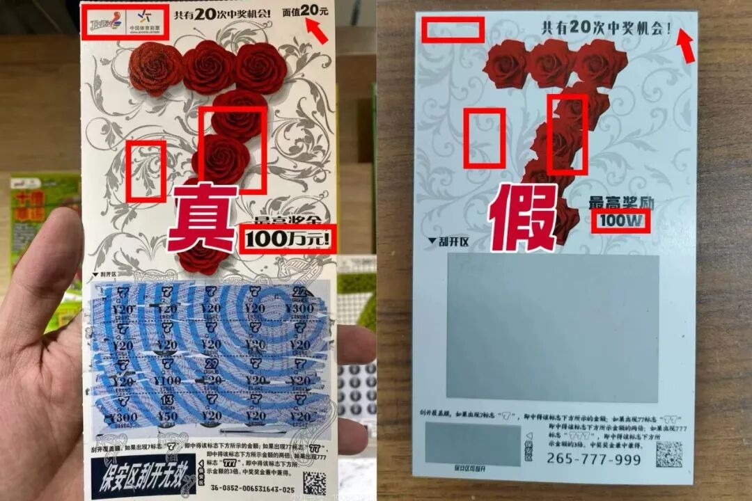 近日,一苏州市民拿着一张俗称“大7”的体彩即开票来到市体育彩票管理中心兑奖,票面显示中奖100万元。但是,刚到窗口,工作人员就发现这张彩票“一眼假”——票面设计、纸张手感等都和正规彩票不一样。