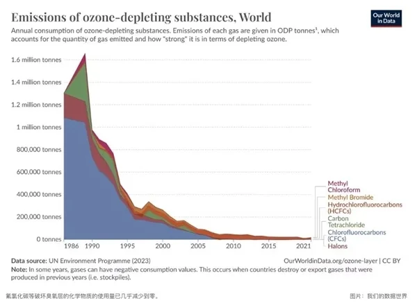 于是在1987年,人类商定了一项被载入史册的协议——《关于消耗臭氧层物质的蒙特利尔议定书》。这份协议在全球范围内,开始逐步限制、淘汰那些破坏臭氧层的化学物质。