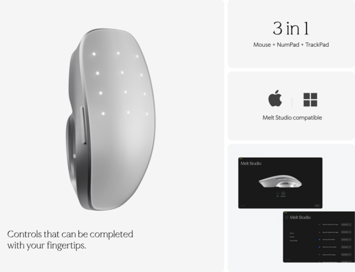 Melt Mouse的表面本质上就是一个触摸板,能够识别手指的移动,由于它可以同时检测多根手指,因此还支持双指手势操作,使其在特定应用中作为触摸板使用时尤为便捷。