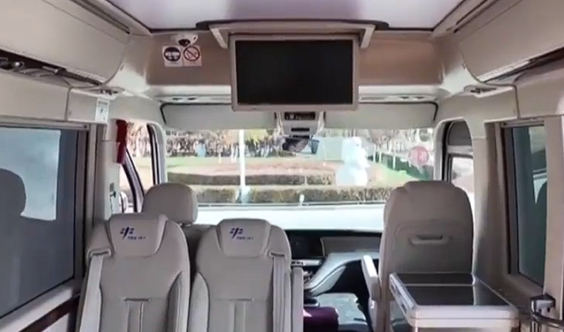 进入车内,和普通版的国悦不同,定制版最大的变化就在于座位的减少,仅为设置15个,均配有头枕,其中四个座椅为航天员专用,加大加宽,宽度达60厘米,支持6向电动调节,可给航天员带去更舒适的体验。
