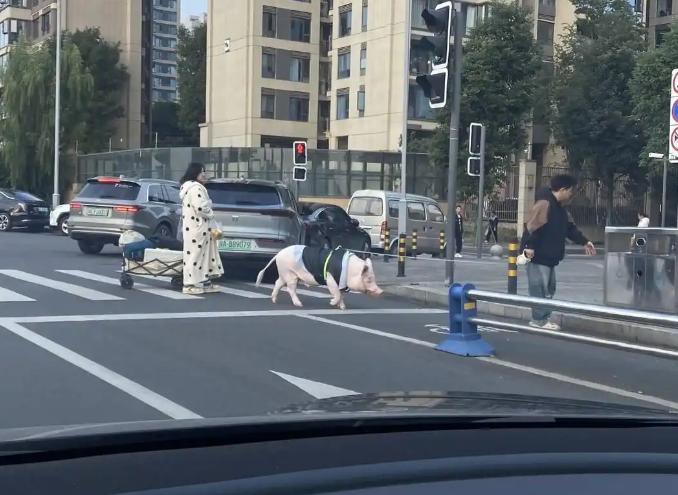 在成都市双流区街头,一幅别样有趣的画面悄然走红网络,引得网友纷纷忍不住举起手机记录下来。只见一对情侣正推着一辆山地露营车悠然前行,男生手中紧紧握着牵引绳,绳子的另一端,一只身着宠物棉衣的大白猪正慢悠悠地迈着步子,瞬间成为街头一道独特的风景线,也迅速在网络上引发了热议。