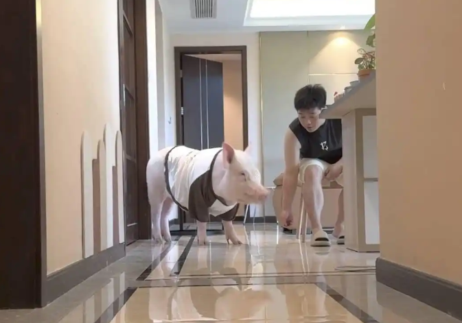 这只备受瞩目的宠物猪名叫“猪蹄花”,它的主人是一位名叫月月(化名)的女孩。时光回溯到三年前,月月从内江的养殖场将“猪蹄花”抱回家中,那时的它小小一只,仅有6斤重,浑身粉粉嫩嫩,如同一个精致的毛绒玩偶,模样格外惹人怜爱。没成想这几年“猪蹄花”越长越壮,如今体重已接近130斤。