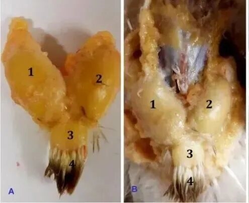 为此,鸟类身上还有一些特殊的结构能进行一步增强羽毛的疏水性。比如,很多鸟类后背靠近屁股的地方,有一个叫尾脂腺的结构。你在吃烤鸭的时候,如果烤鸭的屁股没有被处理掉,可以切开看一看,这里面有两瓣相当大的脂肪团,这就是尾脂腺所在的地方。