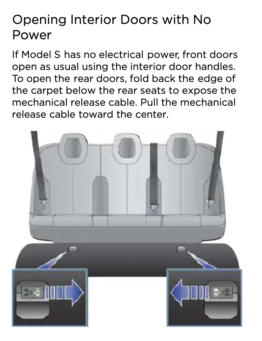 原告称,像米歇尔·鲍尔这样的Model S后座乘客在撞车后特别容易受到伤害,因为他们必须掀开地毯才能找到一个金属拉环,这样他们才能逃生,然而这个金属拉环并不容易被发现。