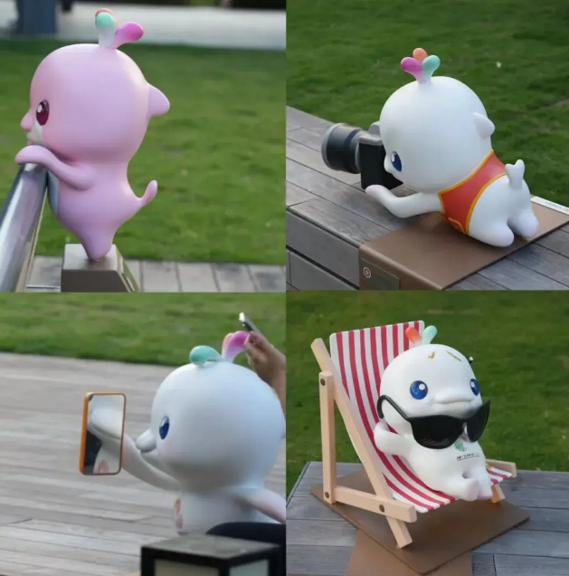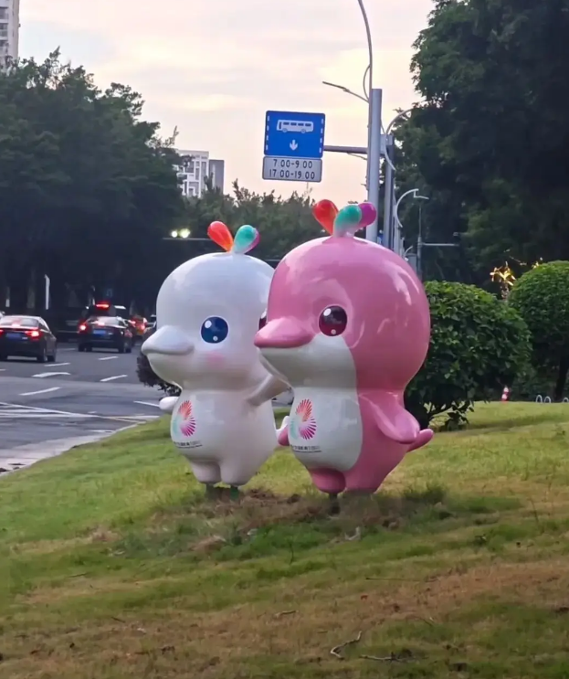 有意思的是,不少网友将海豚吉祥物“错认”成鸡,笑称“正面像海豚,背面更像走地鸡”。