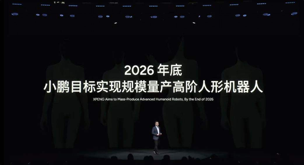 谈及机器人量产,何小鹏表示,2026年底,小鹏目标实现规模量产高阶人形机器人。