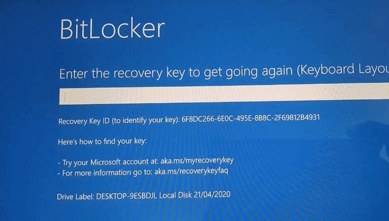 不幸遇到的用户,会在系统启动后看到一个BitLocker恢复界面,要求输入加密秘钥,才能进入系统。