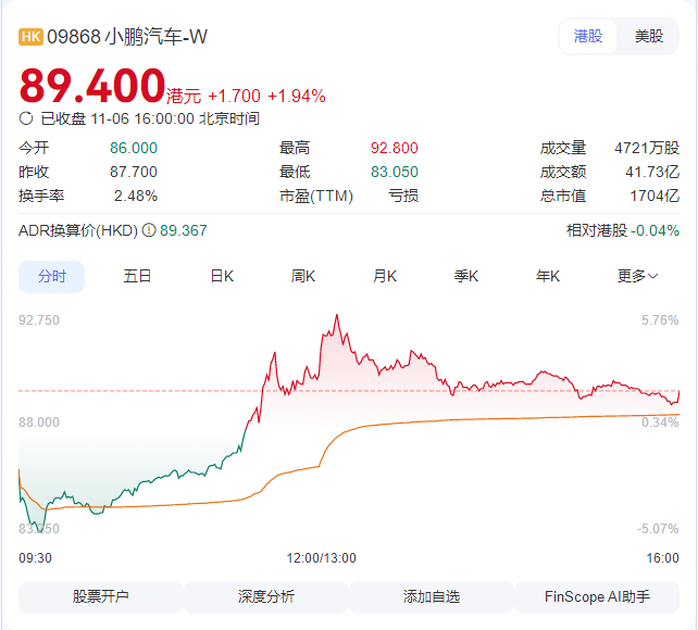 值得一提的是,该视频发布后,小鹏汽车港股直线拉升翻红。截至收盘,小鹏汽车股价报89.4港元/股,涨幅1.94%,市值1704亿港元。